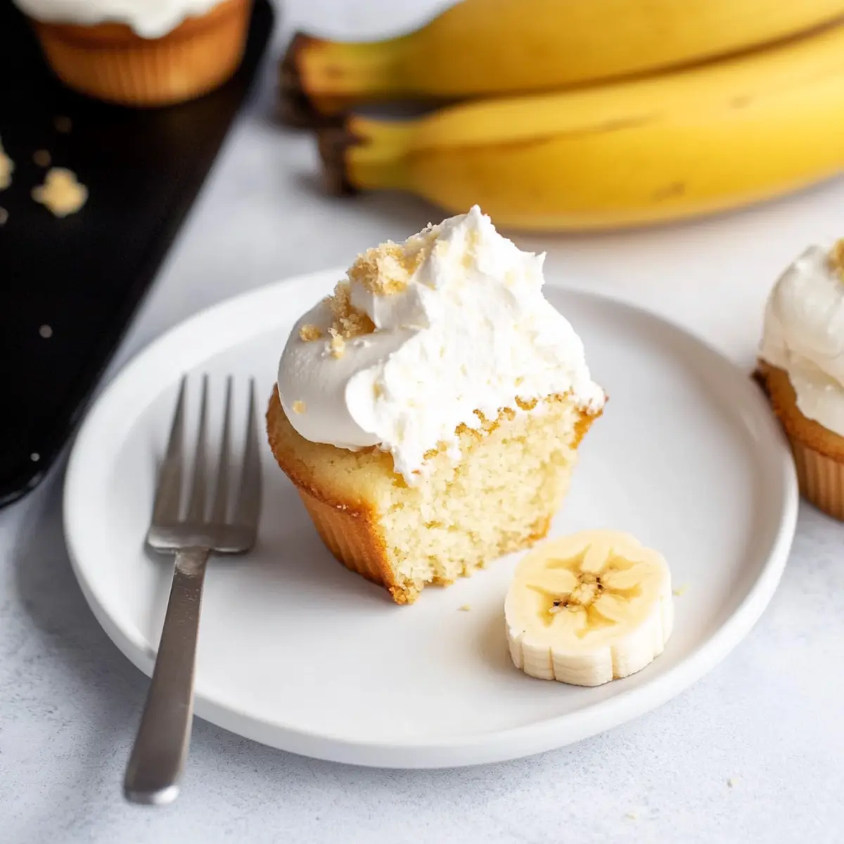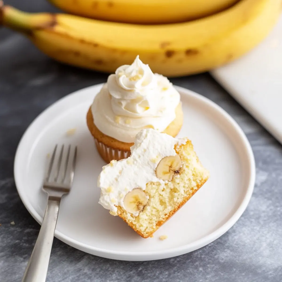 Assemble: Carefully fill each cupcake with the banana cream filling and top it generously with your stabilized whipped cream, creating a decadent finish.