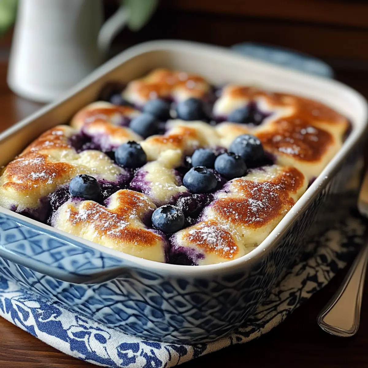 - Assemble Casserole: Preheat your oven to 375°F (190°C). Grease a 9x13 inch baking dish. Pour half of the pancake batter into the dish, layer it with the blueberry filling, and then drop the remaining pancake batter on top, spreading it gently.