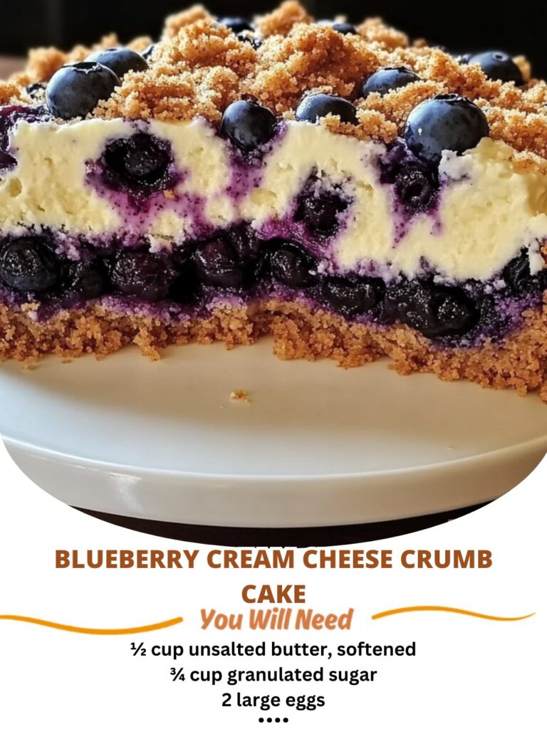 This Blueberry Cream Cheese Crumb Cake is the kind of indulgent, comforting treat that never disappoints. A buttery streusel topping meets a luscious cream cheese layer, while juicy blueberries are baked throughout, creating the perfect balance of sweet, tangy, and crumbly textures. Whether served warm with a cup of coffee, as a brunch centerpiece, or as a dessert for a gathering, every slice is rich, flavorful, and irresistible.