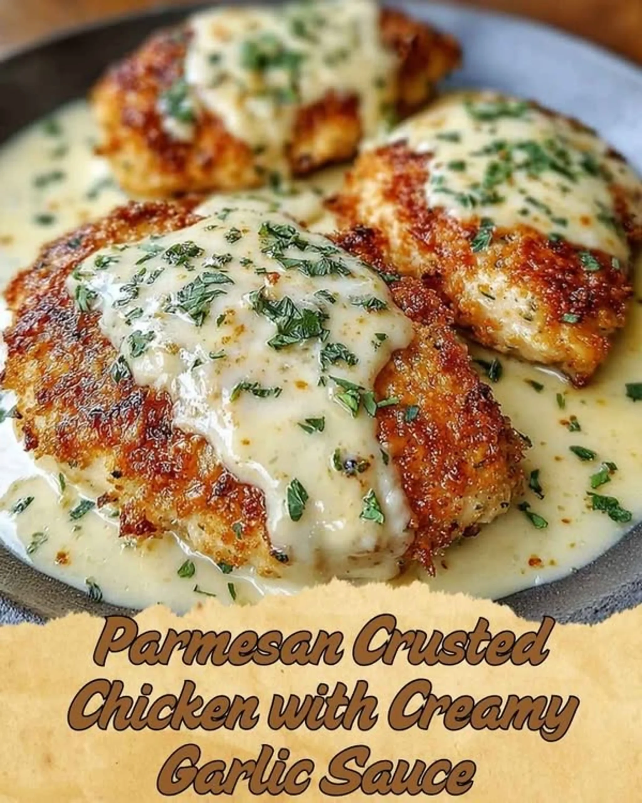 Parmesan Crusted Chicken with Creamy Garlic Sauce That’s Crispy and Irresistible