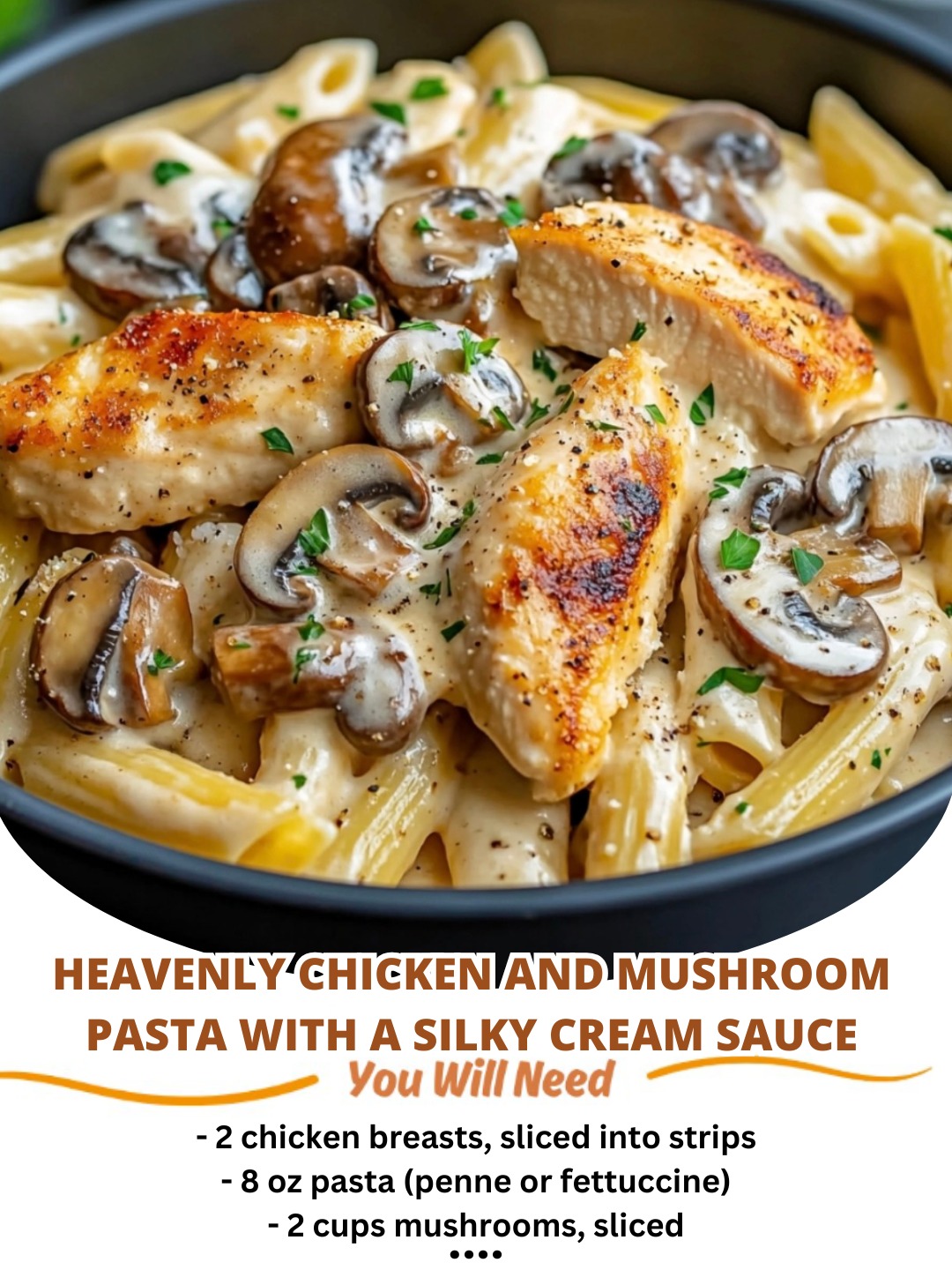 Heavenly Chicken and Mushroom Pasta with a Silky Cream Sauce