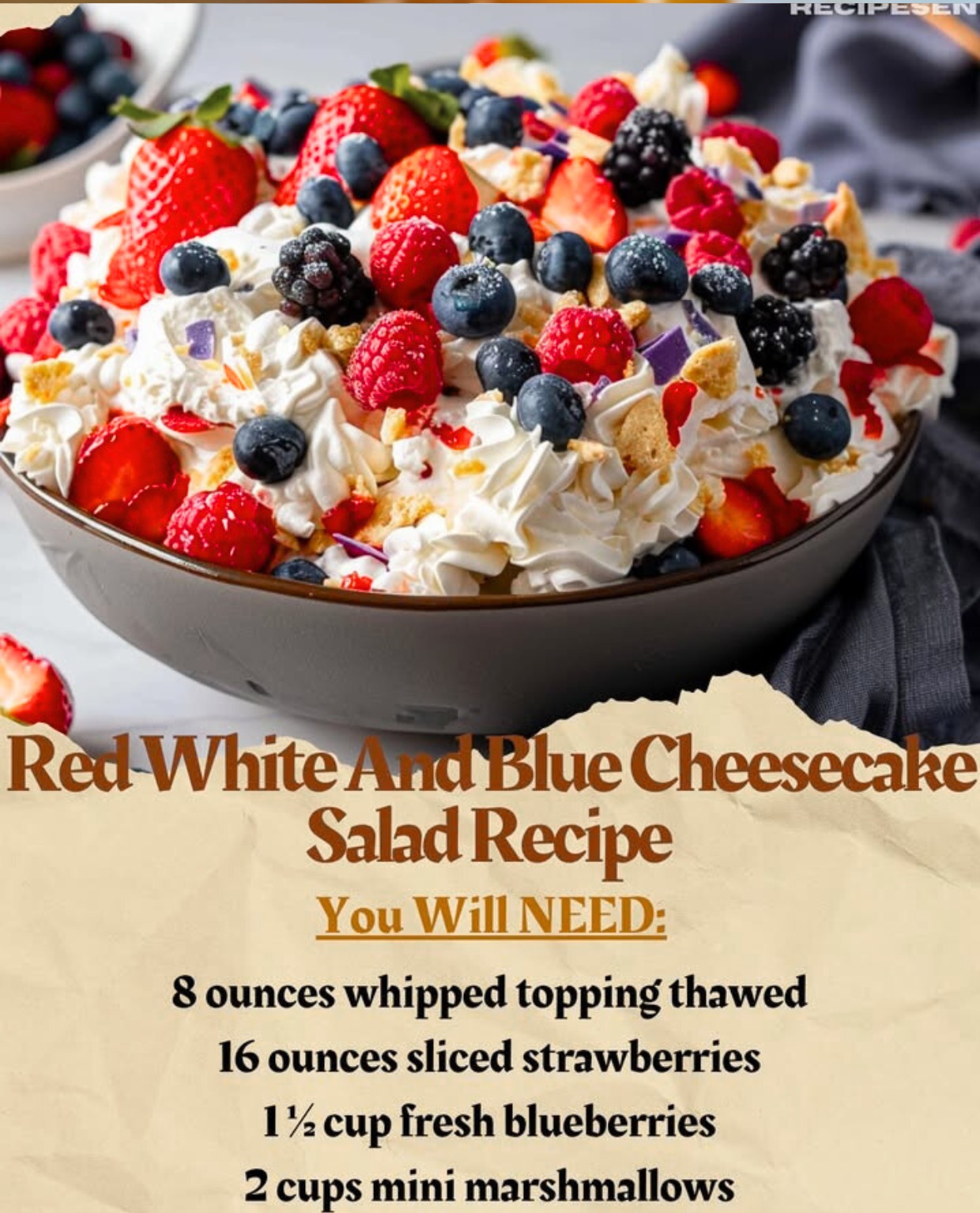Red White And Blue Cheesecake Salad Recipe for Every Summer Celebration