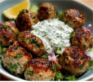 Greek Chicken Meatballs with Tzatziki