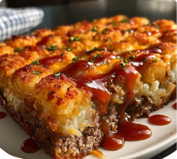 Ultimate Cheesy Meatloaf & Tater Tot Bake