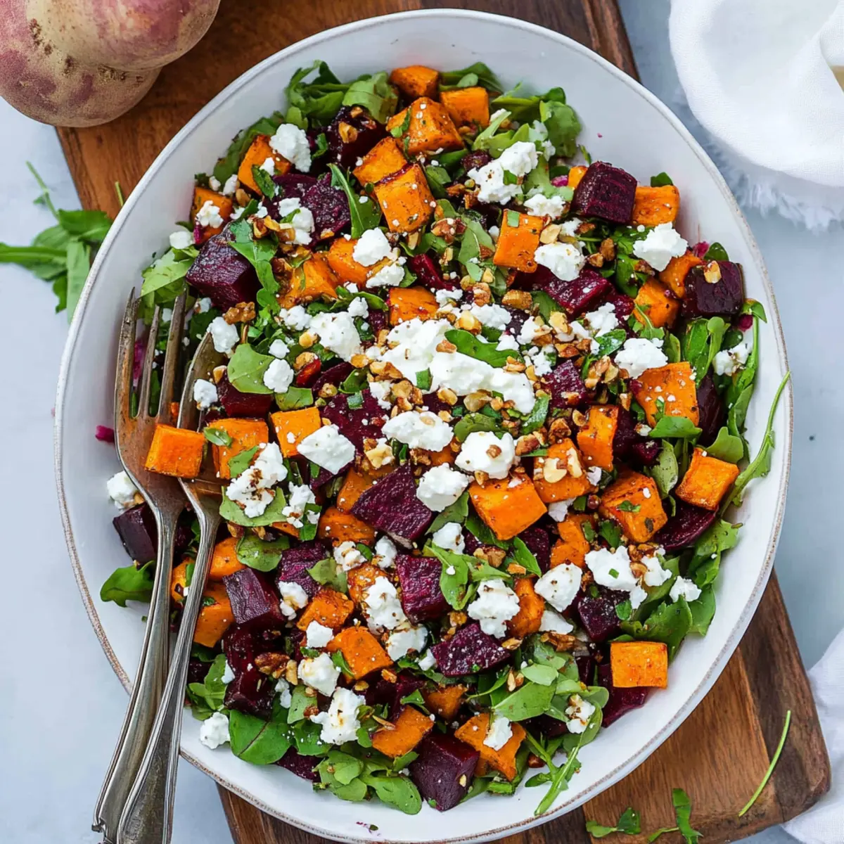 Irresistibly Bold Fall Roasted Sweet Potato Beet Salad with Feta