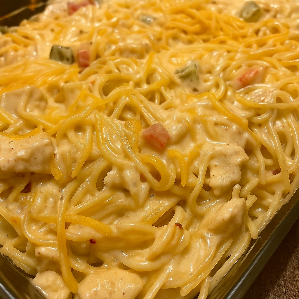 Cheesy Chicken Spaghetti Casserole — Creamy, Cozy & Crowd-Pleasing!