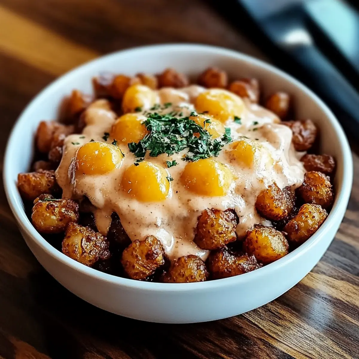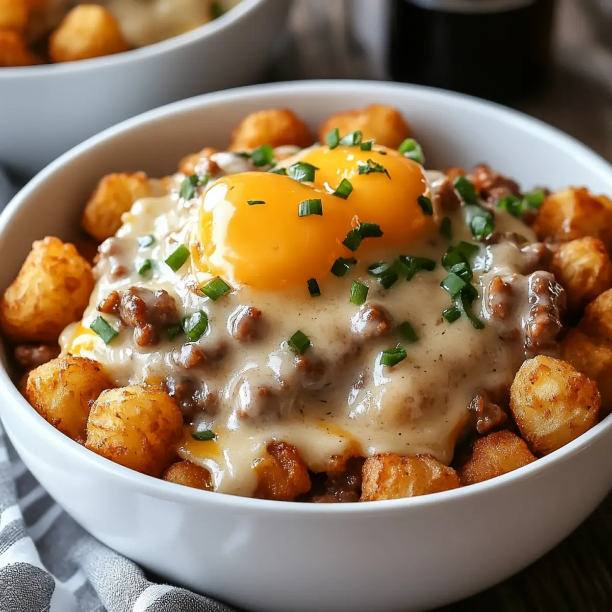 Irresistibly Hearty Tater Tot Breakfast Bowl with Sausage Gravy