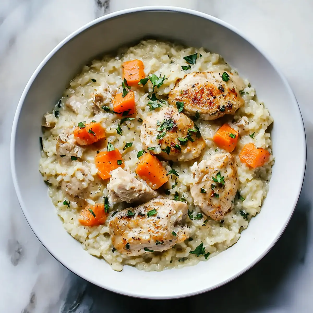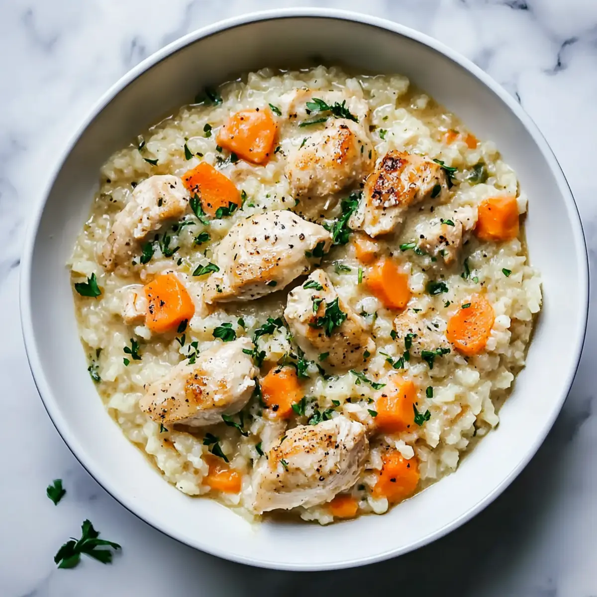Flavor explosion: Juicy chicken combined with creamy rice and sweet carrots delivers a delightful burst of flavor.