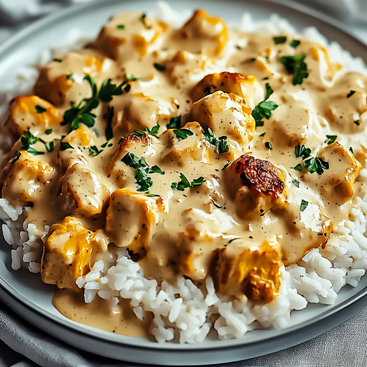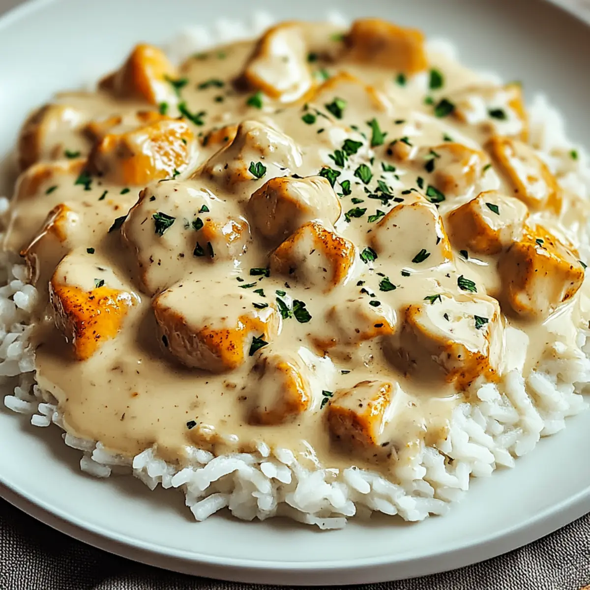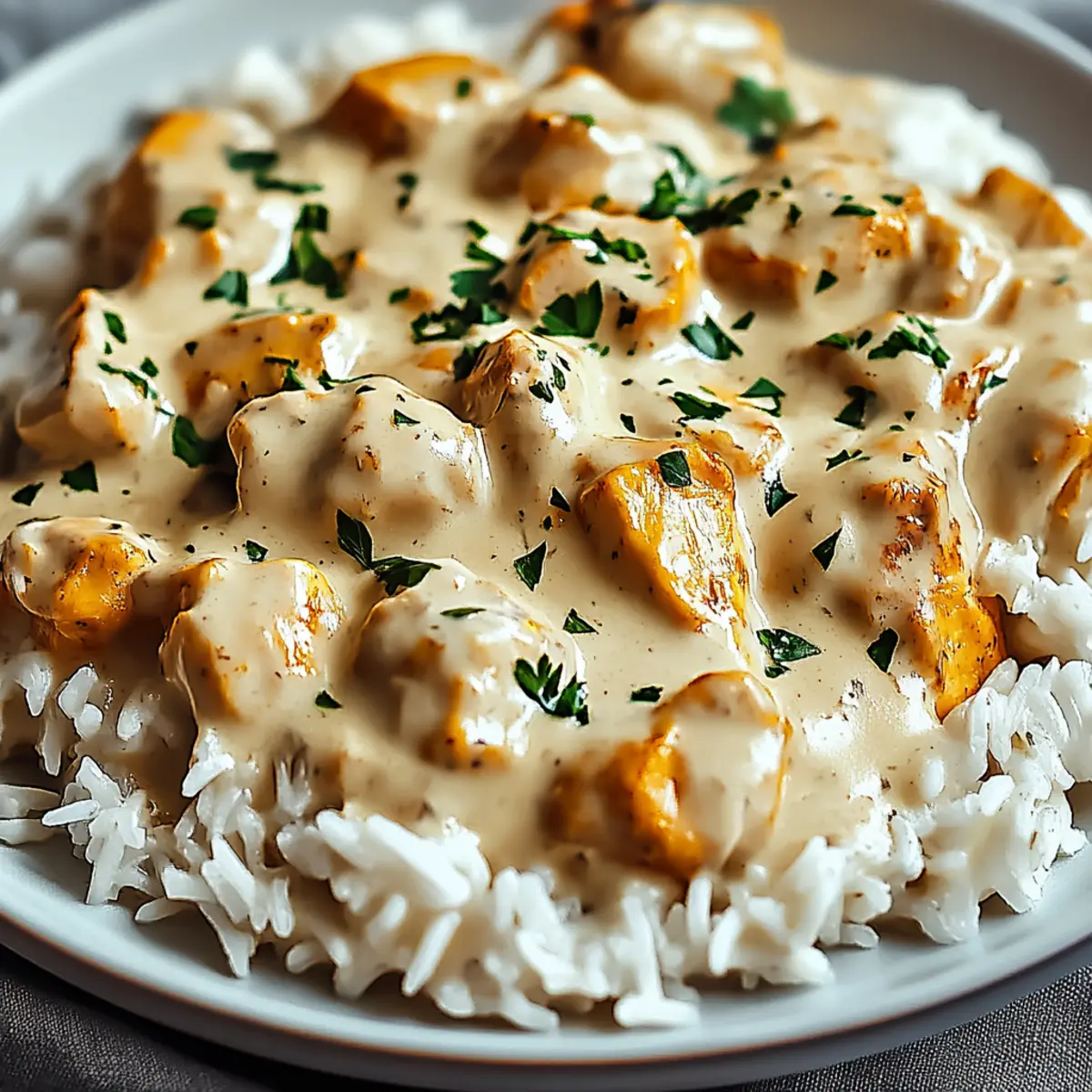 Combine and Serve: Return the cooked chicken to the skillet and spoon the creamy sauce over it. Allow everything to simmer together for 5 minutes before serving on top of the bed of rice. Garnish with fresh parsley.