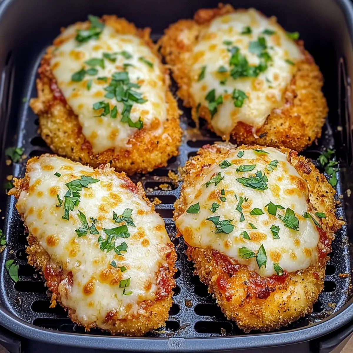 Crispy Air Fryer Chicken Parmesan: A Healthy Twist on a Classic delivers golden-brown chicken with rich marinara and gooey cheese, all in a guilt-free recipe.