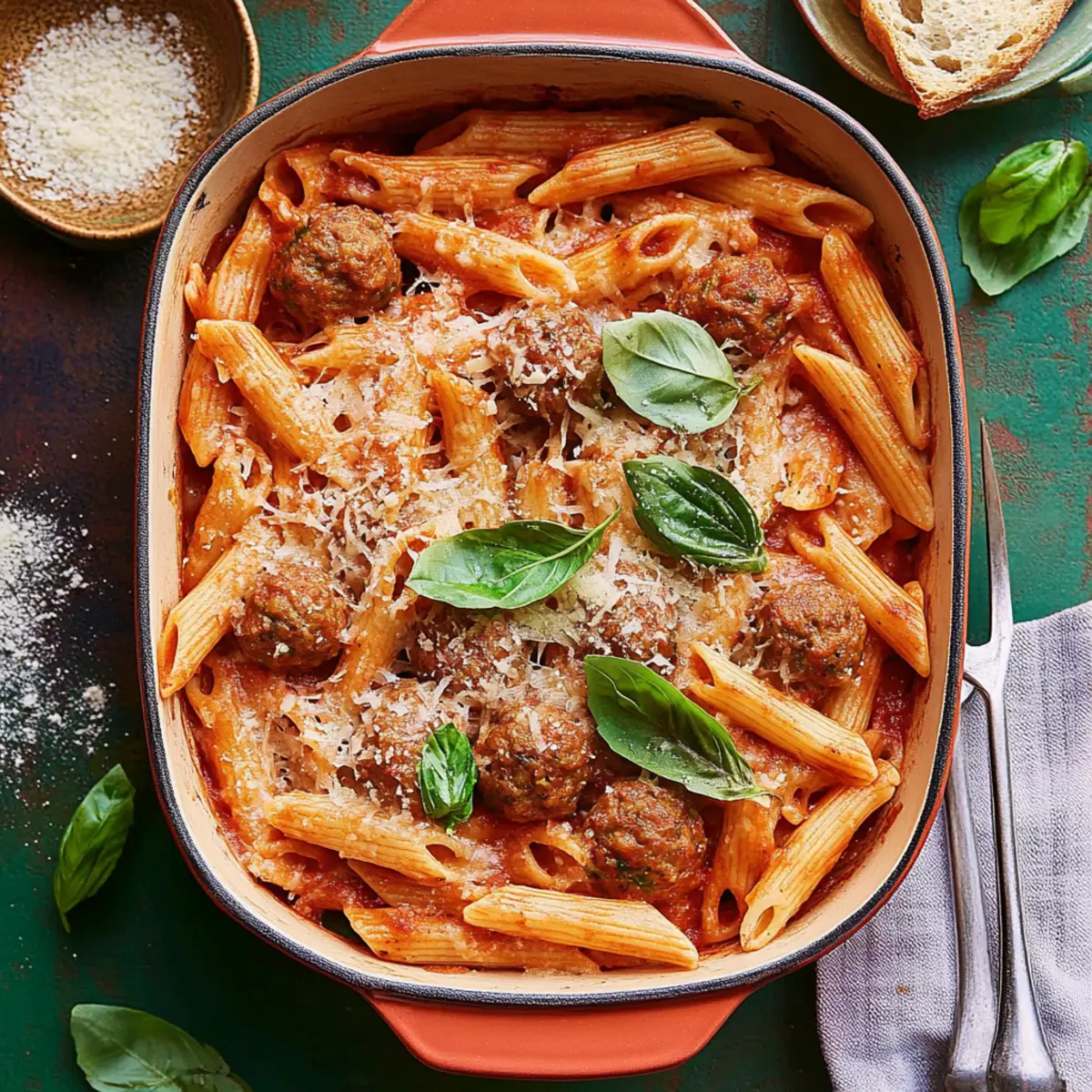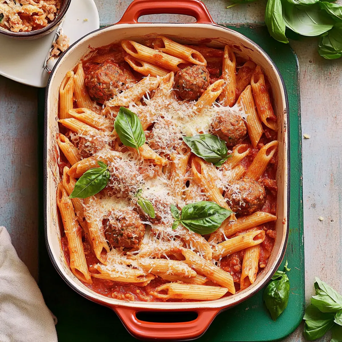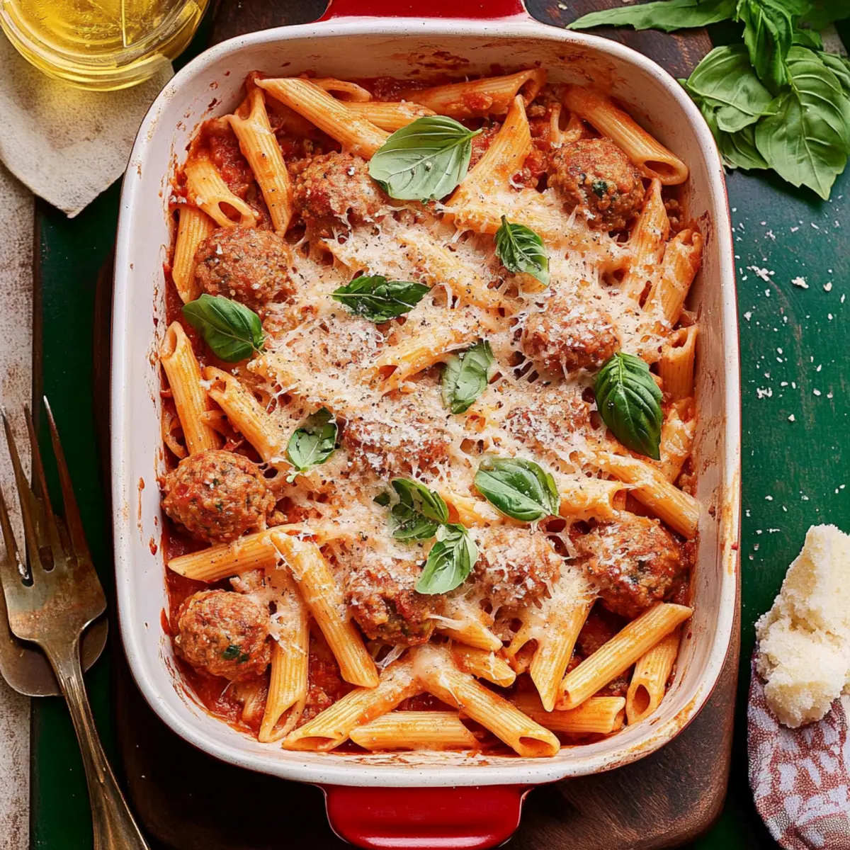 Indulge in the delightful creation of Easy Baked Penne with Meatballs, a dish that brings joy and flavors to your table!