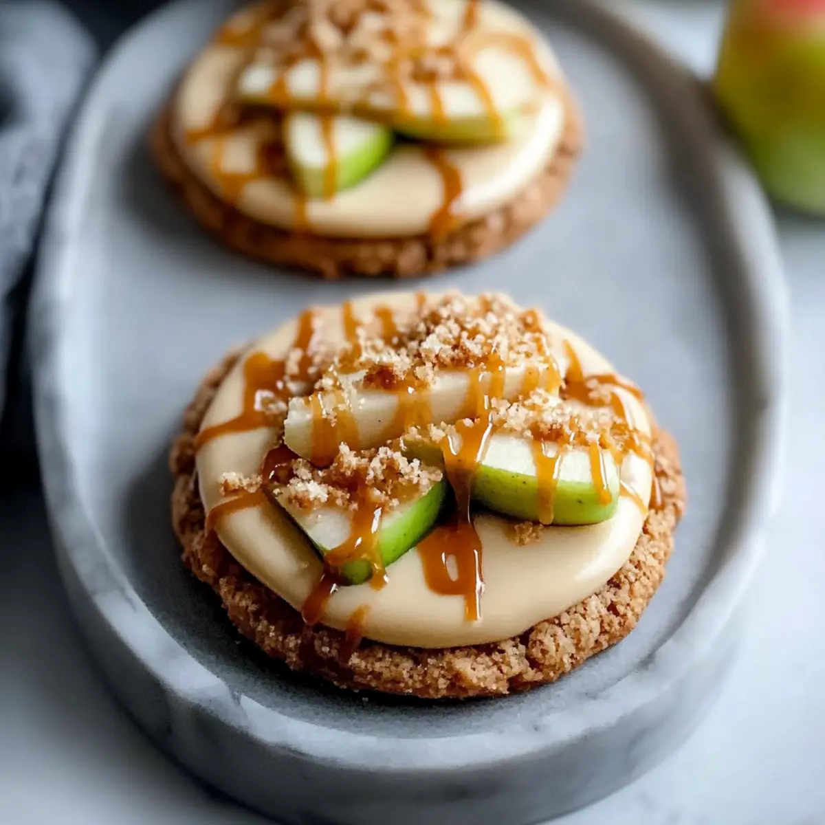 Frost Cookies: Once your cookies are completely cooled, generously frost each one and sprinkle with diced apple, crunchy streusel, and a drizzle of caramel if you're feeling decadent.