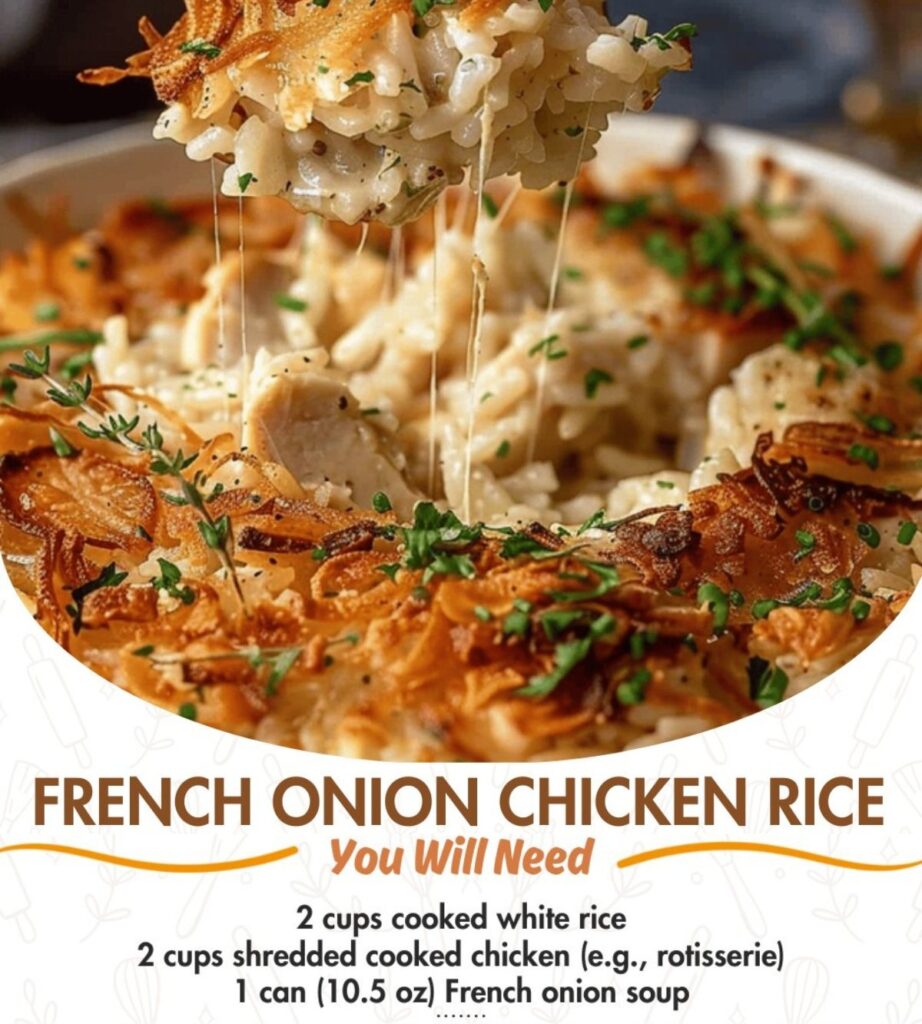 French Onion Chicken Rice takes everything people love about French onion soup and transforms it into a hearty, one-pan dinner. With tender chicken, sweet caramelized onions, creamy rice, and melted cheese, it delivers comfort in every bite. Once you try it, this recipe is sure to become a regular on your table.
