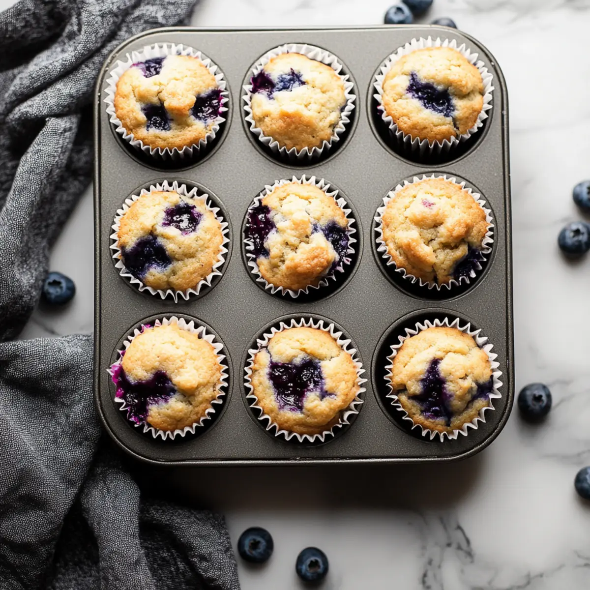 Irresistible Flavor: Each muffin is bursting with juicy blueberries, creating a delightful contrast to the tender cake-like texture.
