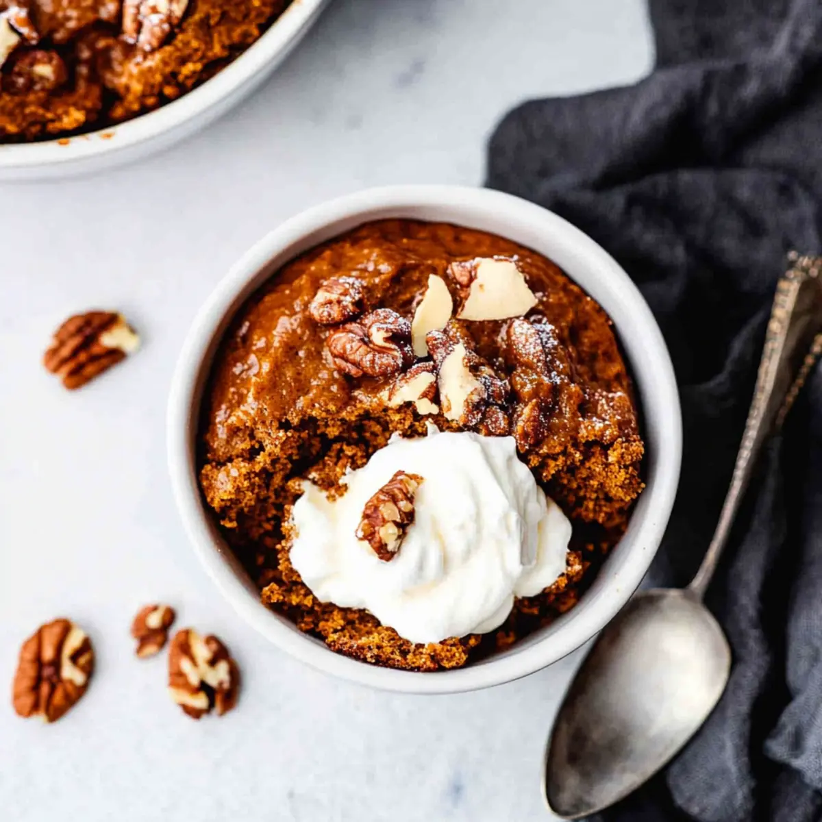 Extra Creamy: Top with a dollop of vegan cream cheese frosting or Greek yogurt for a tangy contrast to the sweet pumpkin cake, creating a luscious experience in every bite.