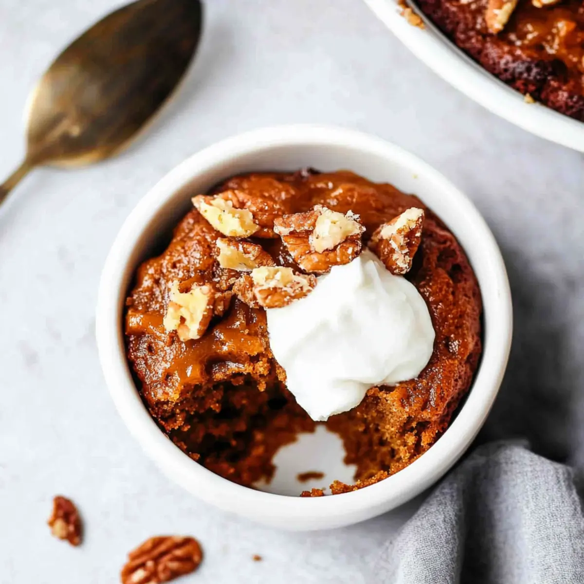 These Healthy Pumpkin Cakes with Applesauce are perfect for busy cooks looking to save time during the week! You can prepare the cake batter up to 24 hours in advance, covering it tightly in the refrigerator to maintain its moisture (avoid pouring boiling water until just before baking). If you'd like to prep even further, the dry ingredients can be mixed and stored for up to 3 days, just remember to keep them in an airtight container. When you’re ready to bake, simply combine the wet and dry ingredients, top with pecans and coconut sugar, and pour boiling water over before placing it in the oven. This way, you can enjoy a delicious, freshly baked dessert with minimal effort!