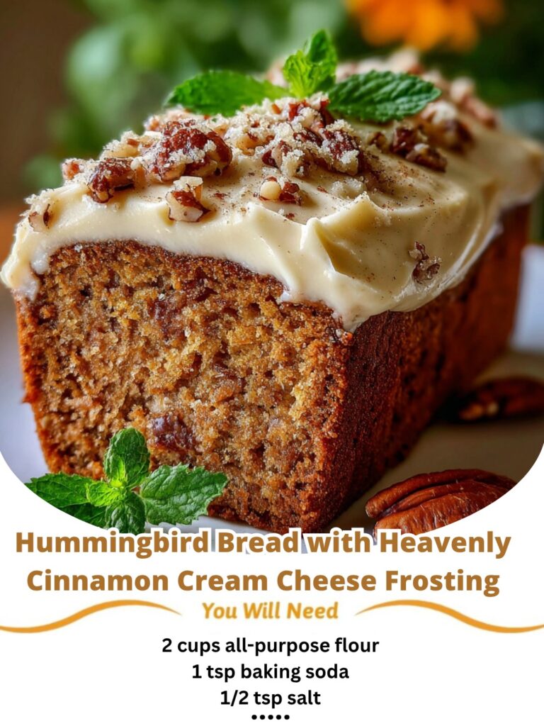 Hummingbird Bread with Heavenly Cinnamon Cream Cheese Frosting is the kind of comforting bake that fills your kitchen with warmth the moment it goes into the oven. This tender, moist bread brings together ripe bananas, crushed pineapple, warm spices, and rich sweetness, all topped with a smooth, tangy frosting kissed with cinnamon. From the first slice, Hummingbird Bread with Heavenly Cinnamon Cream Cheese Frosting feels indulgent yet familiar, making it perfect for brunch tables, cozy afternoons, or a simple dessert that still feels special.