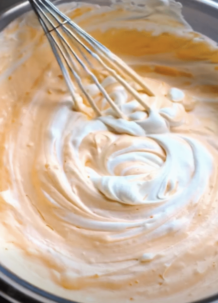 - Fold in whipped topping and orange zest until the mixture is creamy and fully combined.