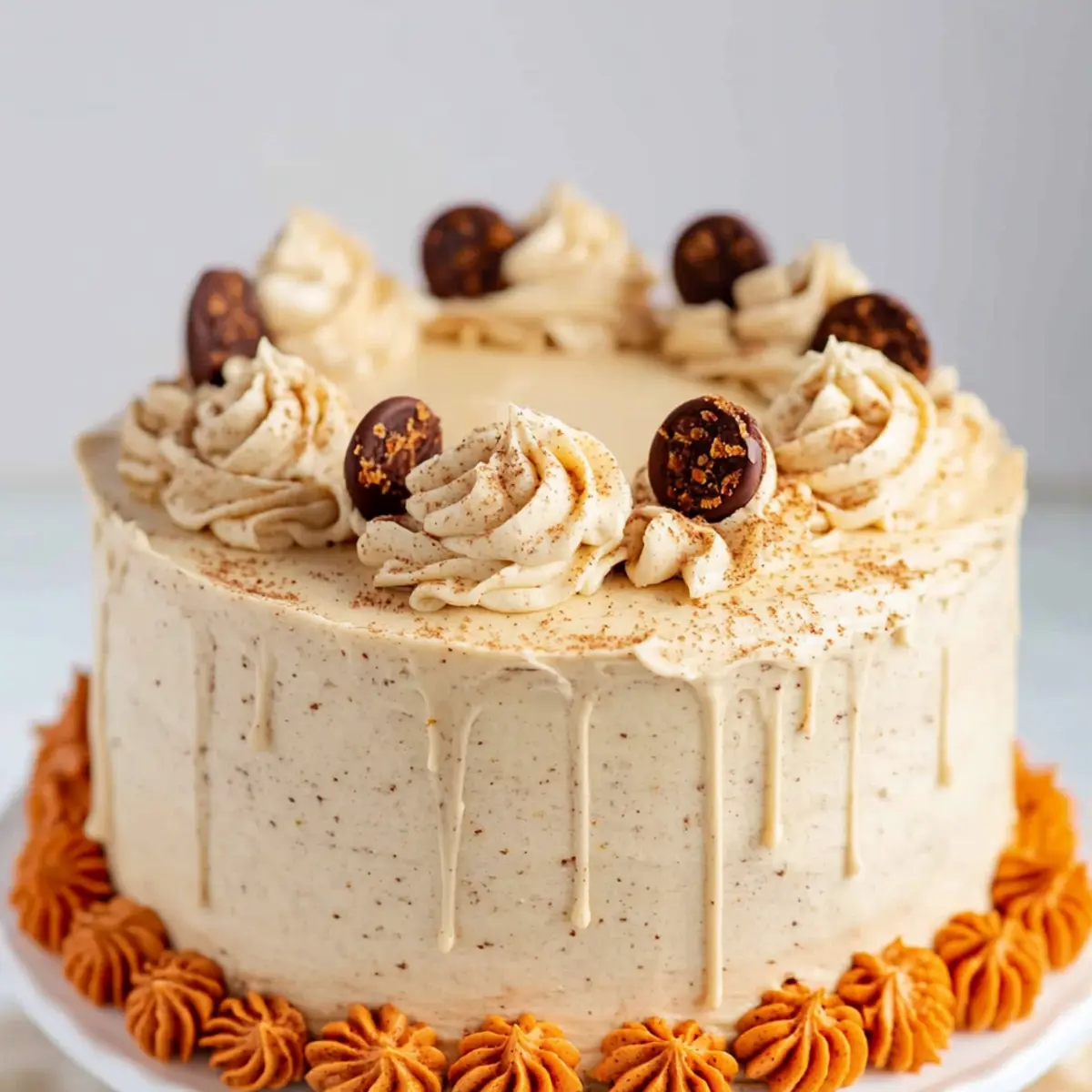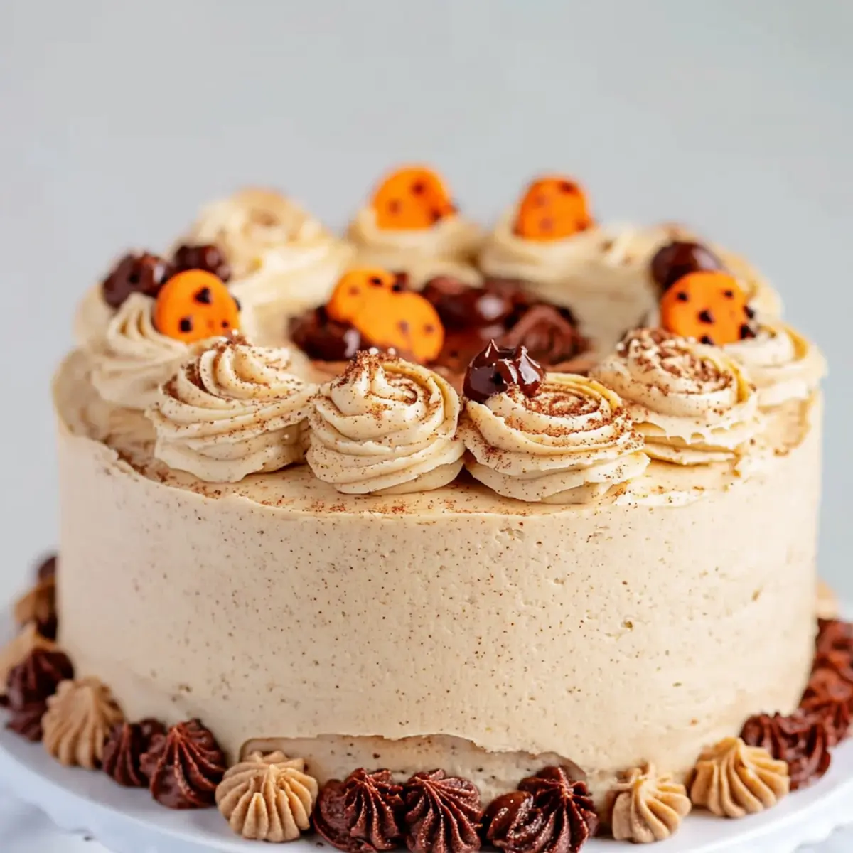 Optional: Garnish with chocolate pumpkin truffles or a sprinkle of extra spices for a festive touch.