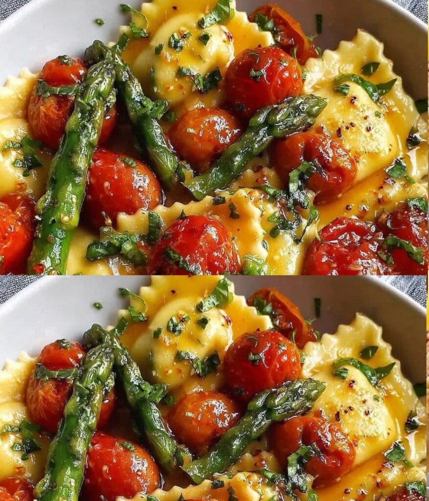 Ravioli with Tomatoes, Asparagus, Garlic, and Herbs is proof that simple ingredients and smart timing can create a dish that feels special. With its fresh flavors, quick preparation, and elegant presentation, it fits seamlessly into both busy weeknights and relaxed dinner gatherings. Once you make it, this pasta recipe quickly earns a regular spot in your meal rotation.