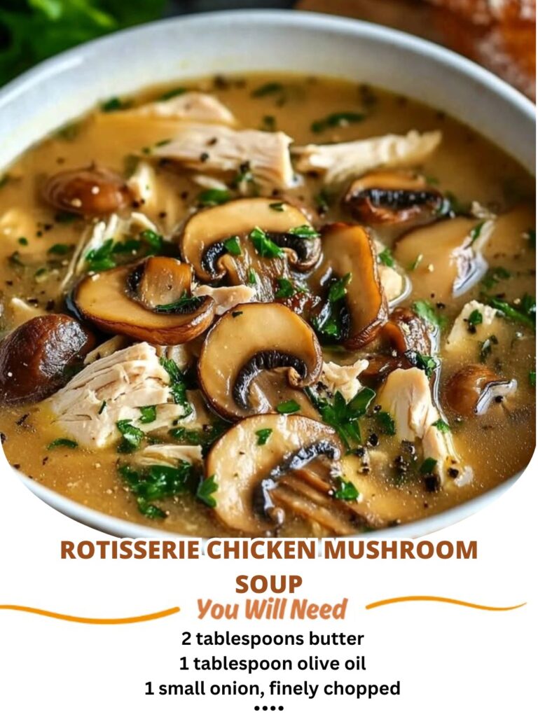 Rotisserie Chicken Mushroom Soup is a comforting, creamy classic that fits perfectly into busy schedules and cozy evenings alike. With rich flavors, tender chicken, and earthy mushrooms, it delivers warmth and satisfaction in every bowl. Once you try this Rotisserie Chicken Mushroom Soup, it’s sure to become a staple recipe you turn to again and again.