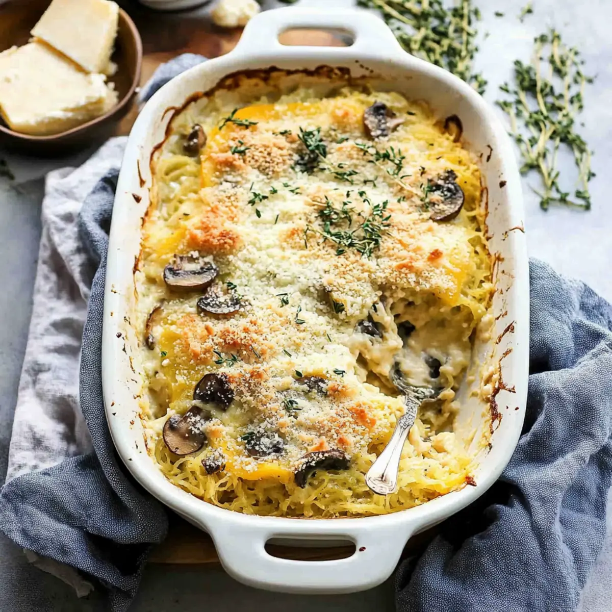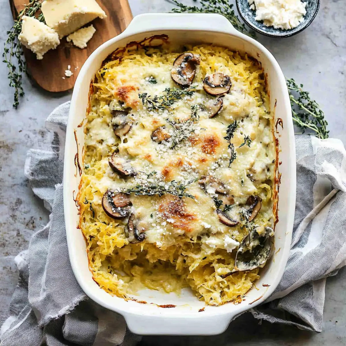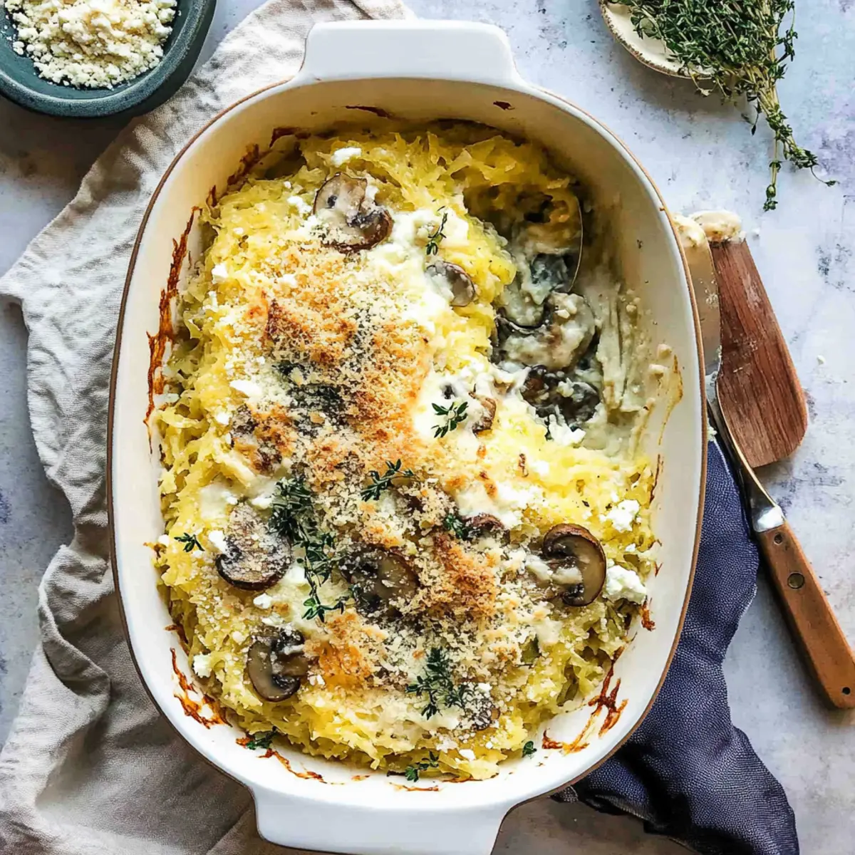 Comforting Spaghetti Squash Casserole with Mushrooms & Goat Cheese