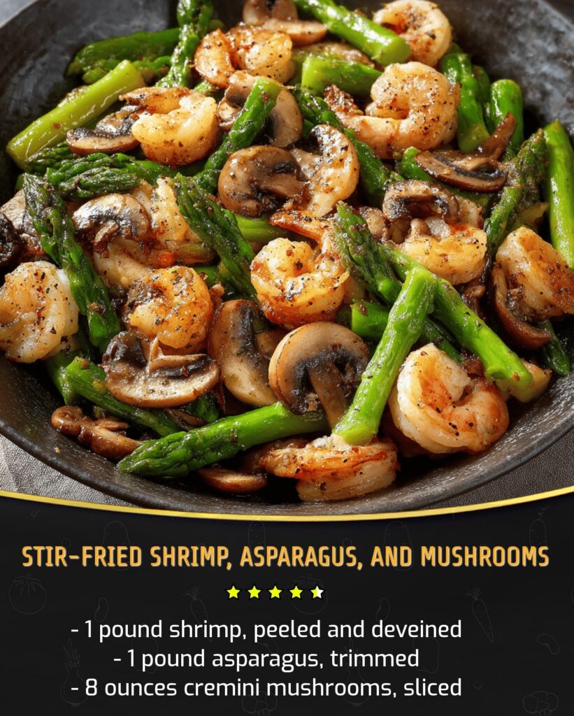 Before cooking, make sure everything is prepped. Shrimp should be patted dry to help them sear properly. Asparagus should be trimmed and cut, and mushrooms sliced evenly. Stir-frying moves quickly, so having ingredients ready makes the process smooth.
