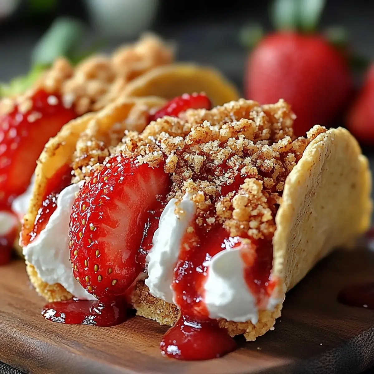 These delightful tacos not only look stunning on your dessert table but are also remarkably easy to make. They’re an impressive treat for gatherings or simply a special way to treat yourself after a long day. With every forkful, you’ll discover why this fun twist on a classic dessert is destined to become your new favorite indulgence. Let’s dive into this sweet adventure and create a dessert that is as pleasing to the eyes as it is to the palate!